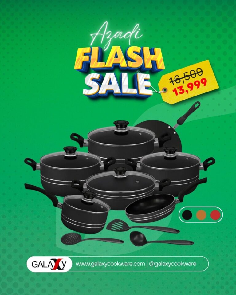 ₨1,399.00 – ₨1,799.00Price range: ₨1,399.00 through ₨1,799.00Galaxy Stylish Grooved Metal Finish Set – Pans & Pots